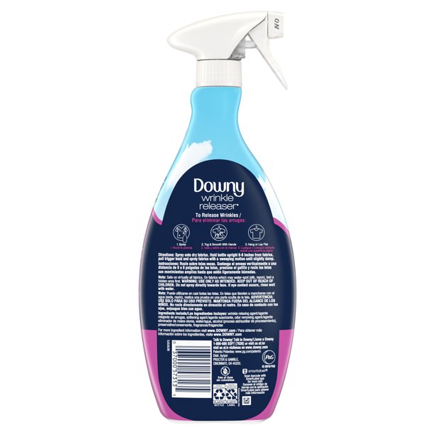 Bid wrinkles adieu any time with Downy Wrinkle Releaser Fabric Refresher. Simply spray it on your fabric, give it a quick tug, and its unique formula lets you smooth away unsightly wrinkles in seconds. Not to mention it adds a fresh scent that leaves you feeling smoother, too.