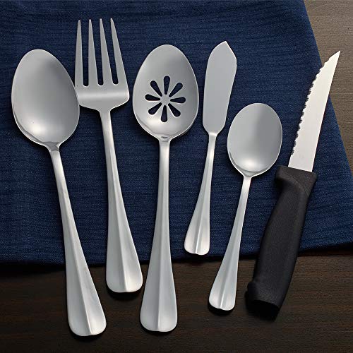 Make sure this fits by entering your model number. SET INCLUDES: Twelve 5-piece place settings plus serving spoon, serving fork, slotted serving spoon, butter knife, and sugar spoon FINEST QUALITY: 18/10 Stainless Steel