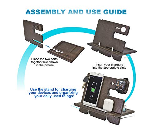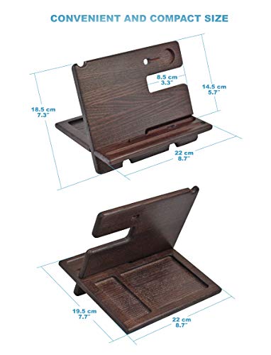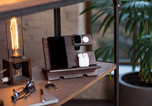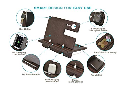 Home Cell Phone & Accessories TESLYAR Wood Phone Docking Station Ash Key Holder Wallet Stand Watch Organizer Men Husband Wife Anniversary Dad Birthday Father Graduation Gadgets Compatible with iPhone iWatch AirPods