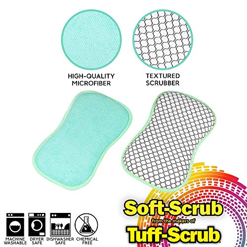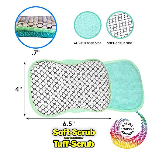 Reusable Sponges – Soft-Scrub dual-sided scouring sponges are made to handle cleaning jobs your old sponge can’t and takes the hassle out of dishwashing. The Soft-Scrub gentle scrubbing side and the other is the microfiber all purpose side for everything else.